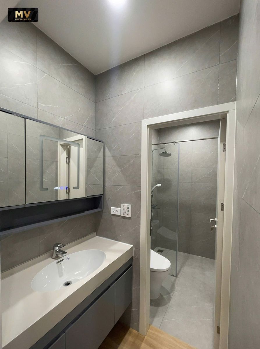 7) WC: tách khô – ướt, gạch xám khổ lớn, sạch và “như khách sạn”