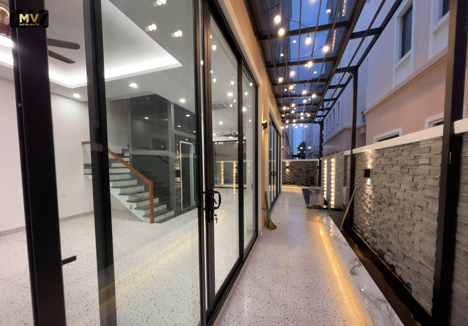 Không gian hành lang sân bên thường bị xem là phần phụ, nhưng ở dự án này chúng tôi biến nó thành một khu vực có giá trị thẩm mỹ và công năng rất cao:
