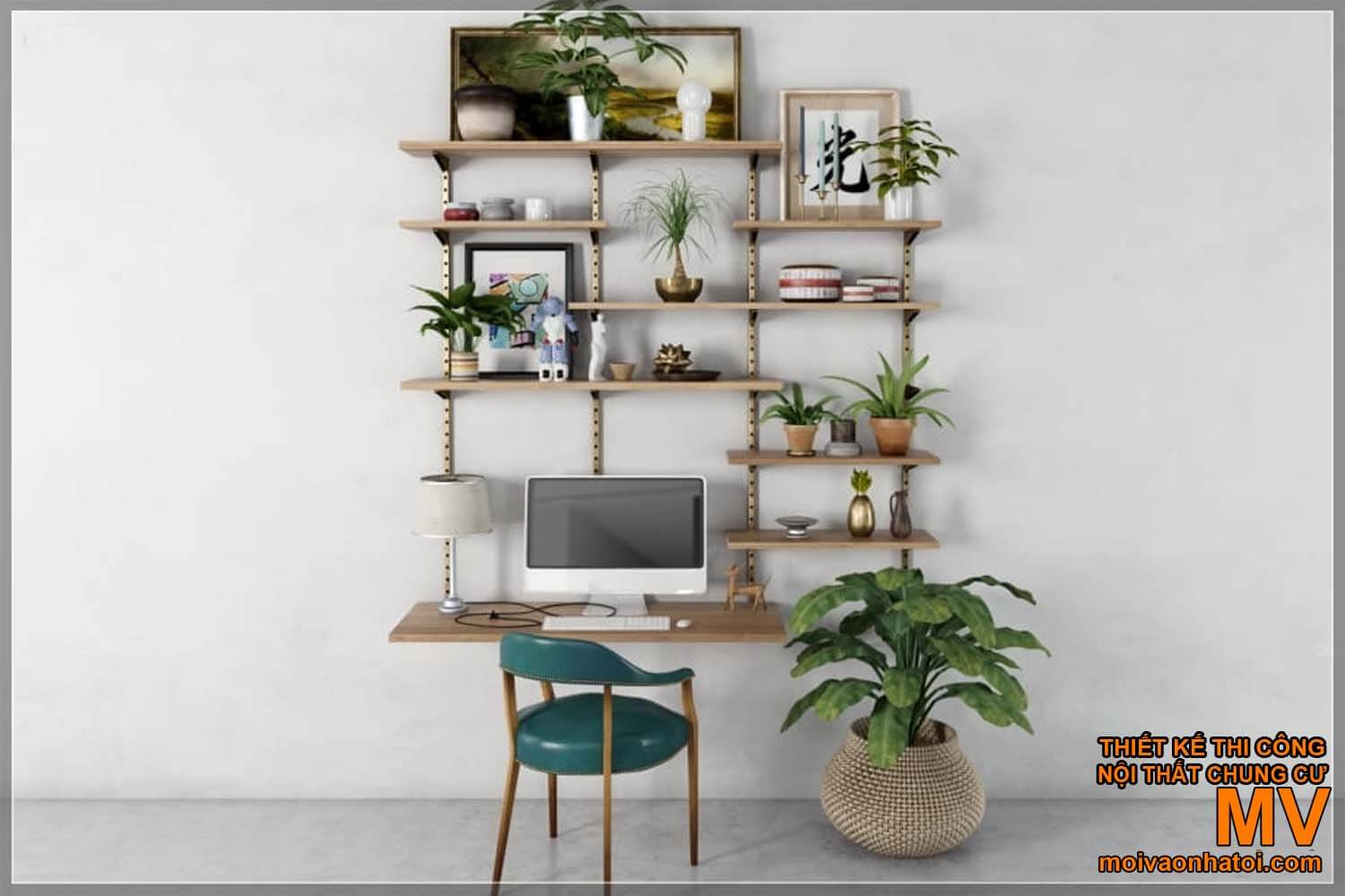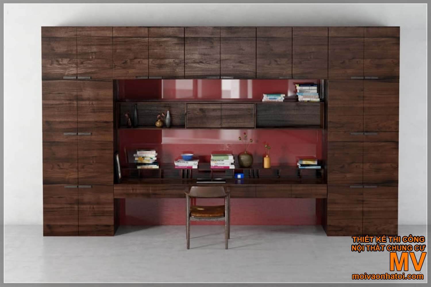 pha lẫn chút mộc mạc, đa dạng nhưng tinh tế với mẫu kệ tủ gỗ độc đáo và mới lạ đó là những gì mà nhiều người ưa thích. Những ngăn tủ gỗ được lắp đặt liên kết với nhau tạo thành những ngăn tủ vuông vắn, bàn làm việc ở giữa những ngăn tủ vẫn tạo đủ