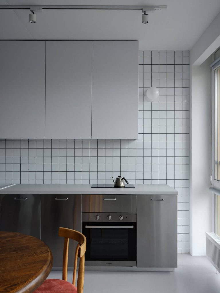 Tọa lạc tại trung tâm thành phố Kiev, Ukraina, căn hộ với nội thất tối giản rộng 45 m2 này được thiết kế cho một cặp vợ chồng trẻ. Căn nhà bao gồm: phòng khách, nhà bếp cùng phòng ăn, phòng ngủ , phòng tắm, và hiên nhà.