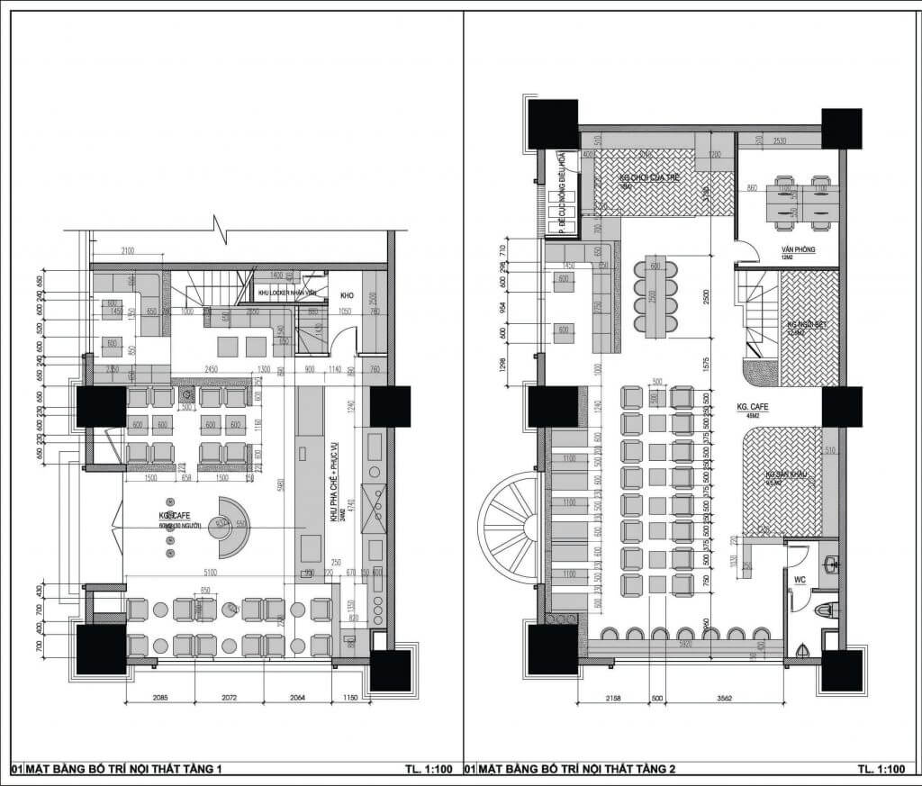 MẶT BẰNG GREEN COFFEE HOUSE – TẦNG 1 VÀ TẦNG 2:
